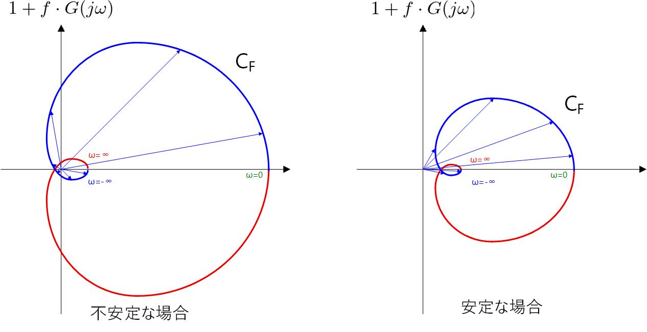 ここで、軌跡が (-1, 0j) の点を巻き込めば不安定、巻き込まなければ安定と判定されます。