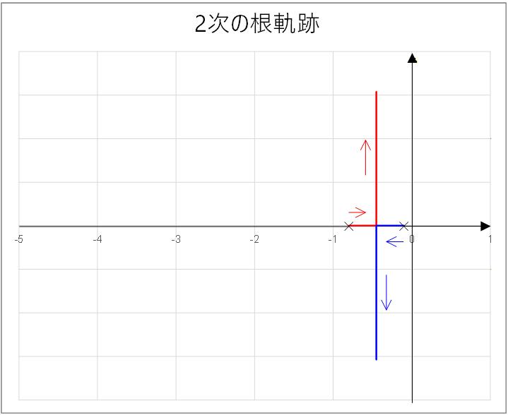 低周波側の 2つの根は、2次の場合と似た動きをし、互いに近づいて重根となった後に実軸上を離れます。