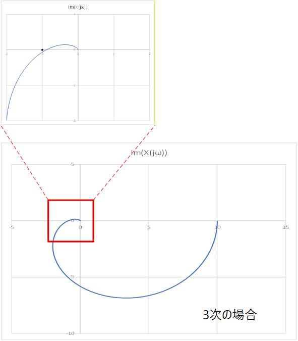 Fig.3-3-3a 〜 Fig.3-3-3c に、それぞれ 1次、2次、3次の場合のナイキスト線図を示します。