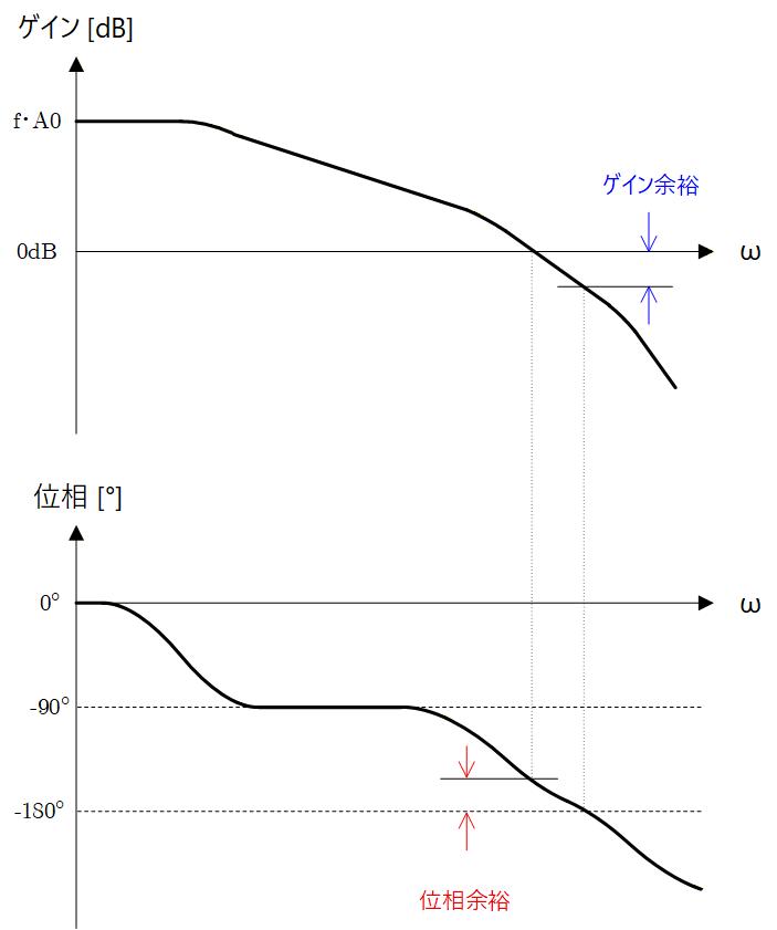 一般的には位相余裕の方が重視され、その値としては 45°〜60° 以上が目安で、ゲイン余裕については、10〜20dB 以上というのが目安になります。