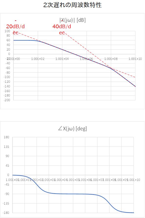 ボード線図の場合、角周波数 vs ゲインのグラフと、角周波数 vs 位相のグラフは、角周波数のスケールを同じにすることで、所定の角周波数の時のゲインと位相の関係が掴みやすくなります。
