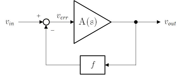 Open Loop の伝達関数が G(s) で表される回路に係数 f でフィードバックをかけた場合の伝達関数 は、
