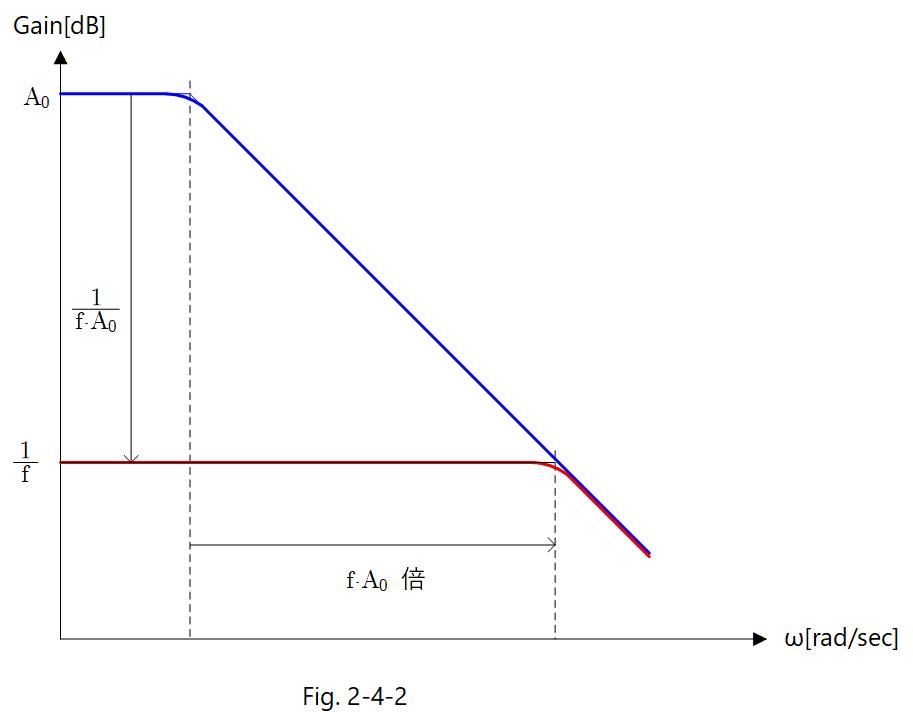 以上から DCゲインはもとの Open Loop ゲインの に対して になって となり、代わりに、Pole 角周波数は 倍になることがわかります。 つまり、フィードバックによってゲインを抑圧した分だけ帯域を向上させることが可能となります。