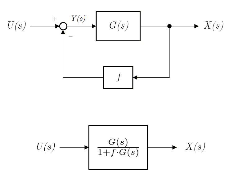 ここで、 は入力で、 は出力、 は Open Loop の入出力伝達関数で、 はフィードバックの伝達関数を表します。