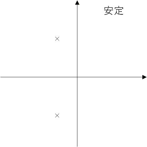 ここで、 は正の実数なので特性方程式の根は左半面にしか出ません。