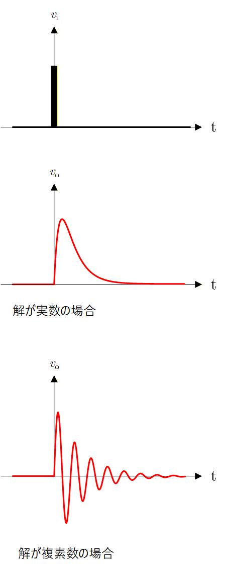 解が虚数の場合は , として出力応答の式に代入すると