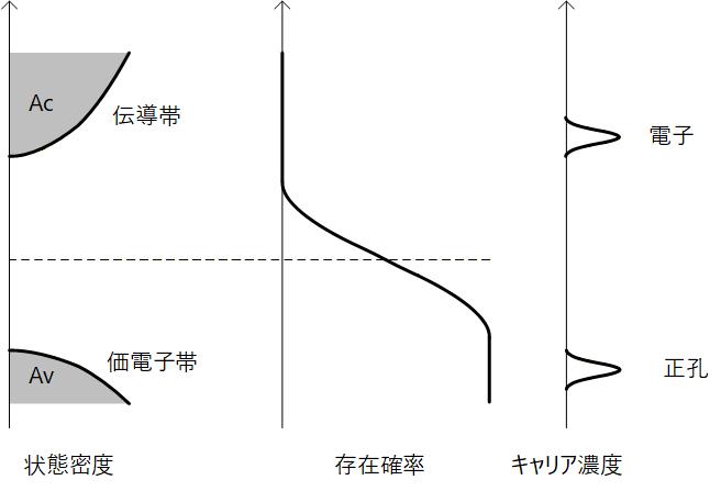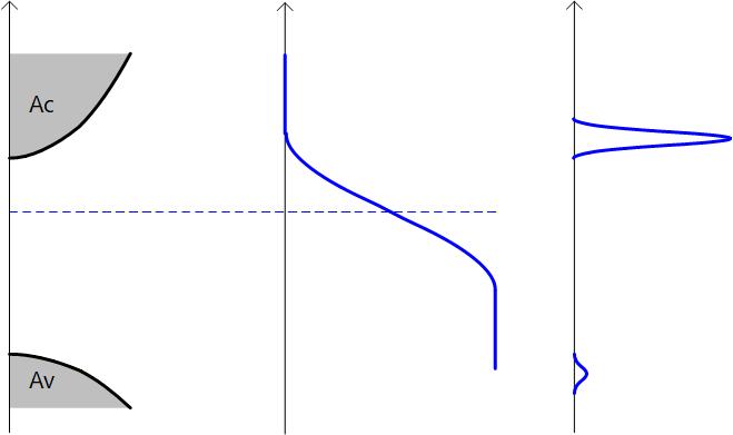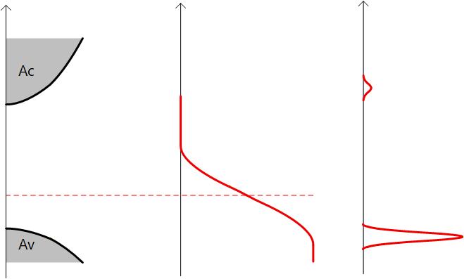 ここで、 , はそれぞれ伝導帯・価電子帯の状態密度で、 , はそれぞれ伝導帯・価電子帯のエネルギー準位、 はフェルミレべルのエネルギー準位を意味します。