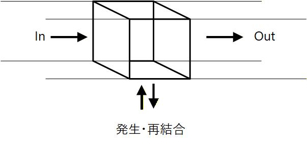 ある閉じた領域を考えた場合、その領域に対してドリフト・もしくは拡散で流入するキャリアの数と、その領域からドリフト・もしくは拡散で流出するキャリアの数の差は、その領域で発生・再結合するキャリアの数に等しいという関係が常に成り立ちます。