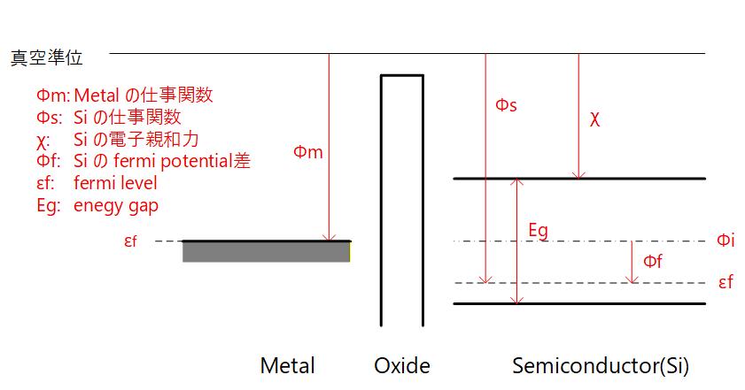 MOS 構造とは、Fig. 3-1a のような Metal-Oxide-Semiconductor の3層からなり、MOSトランジスタの骨格をなす重要な構造です。