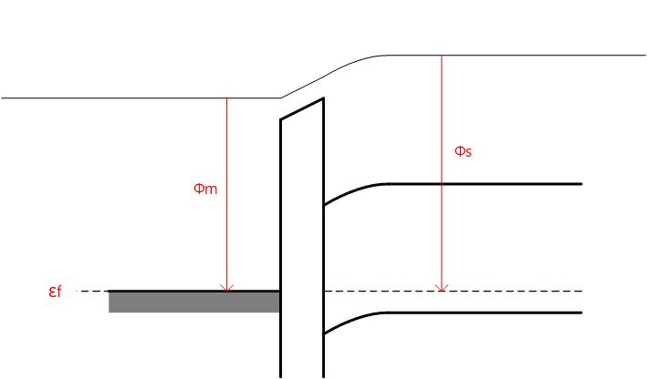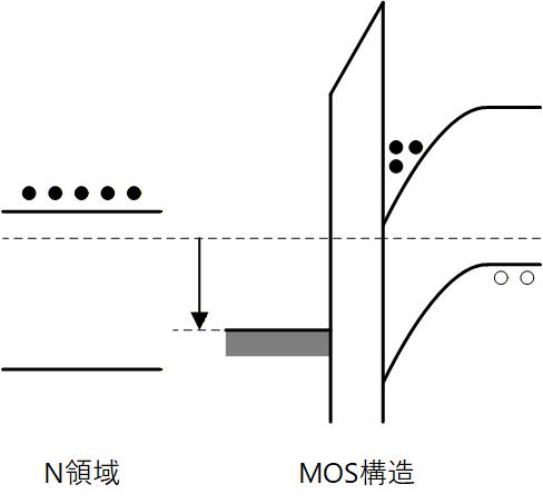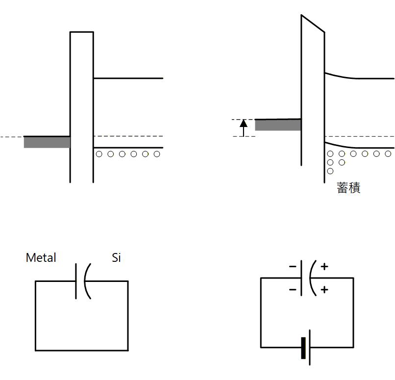 バンドが平坦な領域は中性電荷領域で、バルク半導体の状態と同じです。