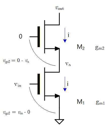 M3 のトランジスタについては M1 と同じ小信号電流が流れるから